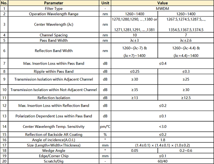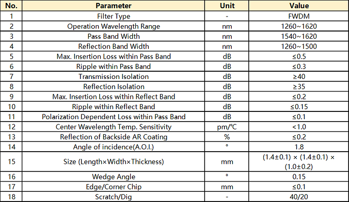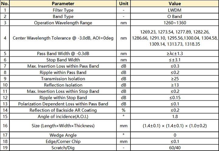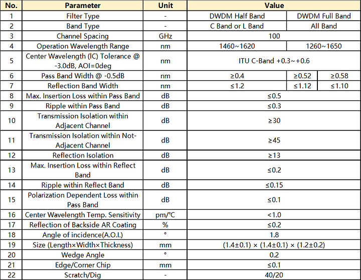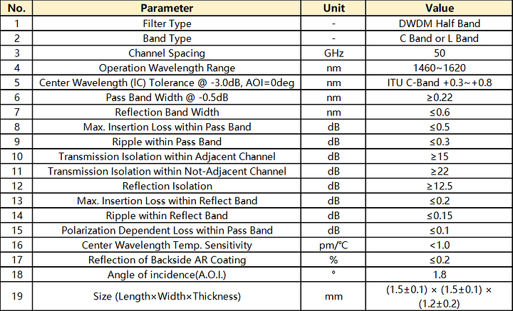 DWDM Filter(50G Hz) (Low Standard)