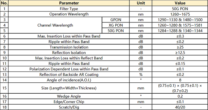 50G PON Filter