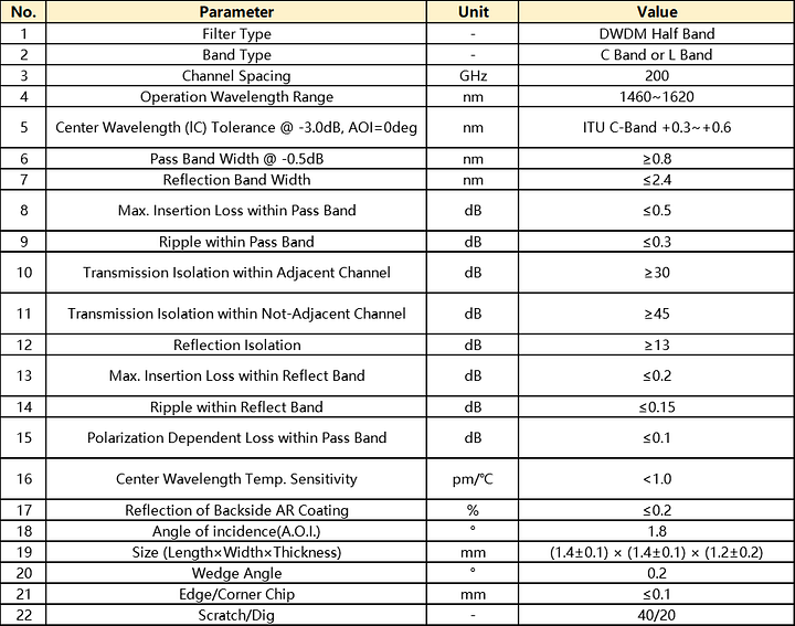DWDM Filter(200G Hz)